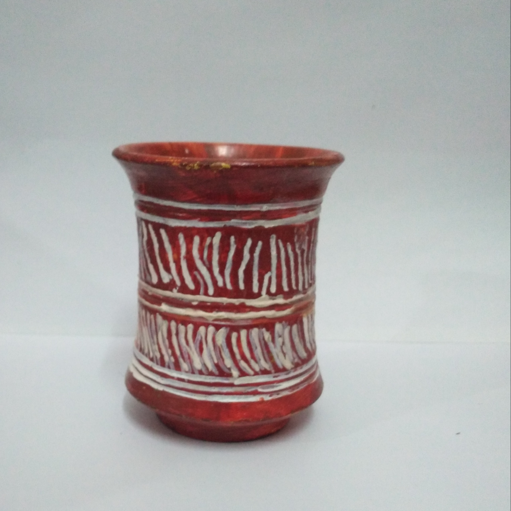 Ceramic pot made with natural clay, painted with acrylic colors - Brown and design with white acrylic color. Can also be use for pen/ pencil holder or use for planting or centerpiece for table.